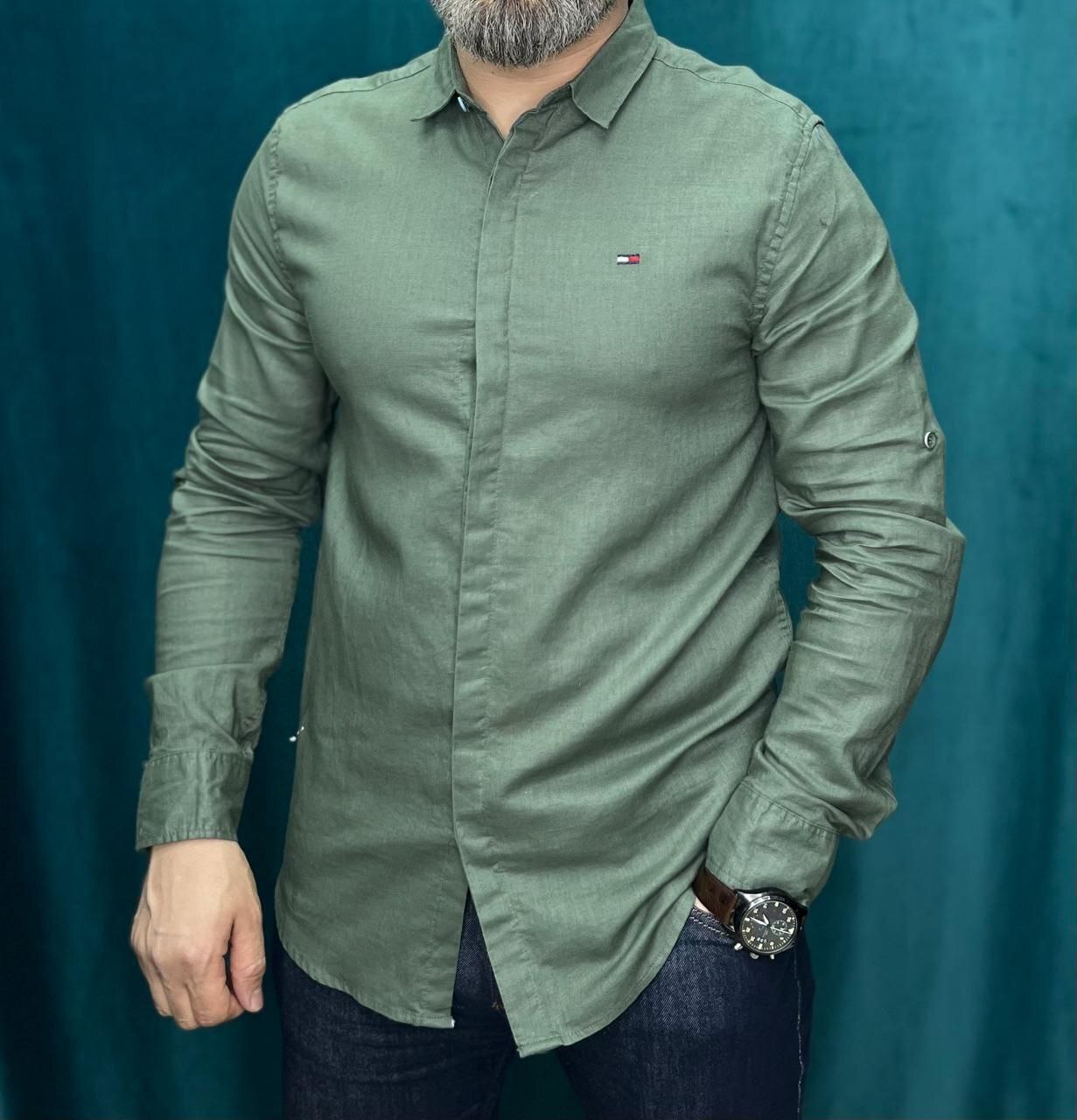 Рубашка TOMMY HILFIGER 058903green ЛЕН